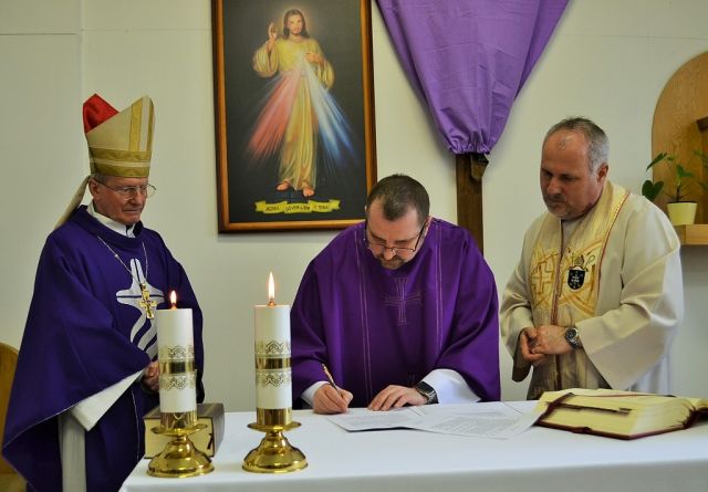 Veliteľ 1. mechanizovanej brigády brigádny generál Alexander Kollárik privítal pána biskupa v mene všetkých vojakov a civilných zamestnancov, ktorí spoločne prišli do kaplnky pookriať a načerpať duchovnú posilu a pokojnú atmosféru svätej omše. Úsilím pána biskupa Rábeka bolo priblížiť účastníkom nielen význam a duchovný rozmer, ale predovšetkým slávnostne uviesť do úradu nového duchovného 1. mechanizovanej brigády kapitána Jána Ostapčuka. Pán biskup zároveň využil príležitosť oceniť novo ustanoveného duchovného 1.mb medailou Sv. Šebastiána I. stupňa za zásluhy o duchovnú službu katolíckym veriacim v Ozbrojených silách a ozbrojených zboroch SR a blížiacemu sa 25. výročiu kňazskej vysviacky. Po svätej omši sa prítomní presunuli do Siene cti a slávy, kde Mons. Františkovi Rábekovi veliteľ brigády odovzdal pamätnú mincu spolu s ďakovným listom.