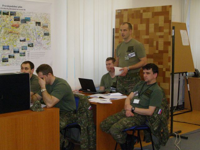 Ďalšia skupina štábu predstavujúca hlavných cvičiacich sa so simulovaným námetom popasovala na dobrej úrovni. Ich hlavnou stanovenou úlohou bolo za dva dni zvládnuť plánovací proces MDMP (Military Decision Making Process), čoho výsledkom bol komplexný plánovací dokument – operačný rozkaz veliteľa brigády pre priamo podriadené zložky. Veliteľ brigády bojového zabezpečenia plukovník Jozef Ševčík upriamil pozornosť cvičiacich na niektoré oblasti, ktoré mohli riešiť operačne viac do hĺbky, čo by im prinieslo väčšiu možnosť flexibility použitia jednotiek. Celkovo však cvičiaci úlohu splnili požadovaným spôsobom, čo konštatoval aj riadiaci cvičenia podplukovník Ivan Balog náčelník štábu brigády.