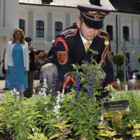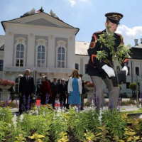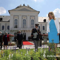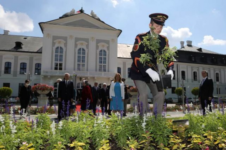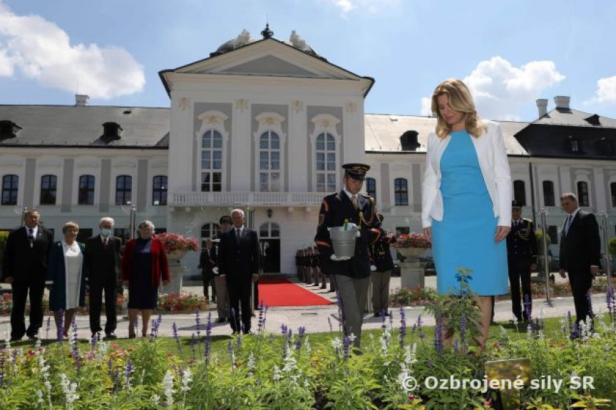 Slávnostné zasadenie ruže zabezpečilo 60 príslušníkov Čestnej stráže prezidenta SR pod velením majora Davida Kejdanu.