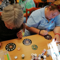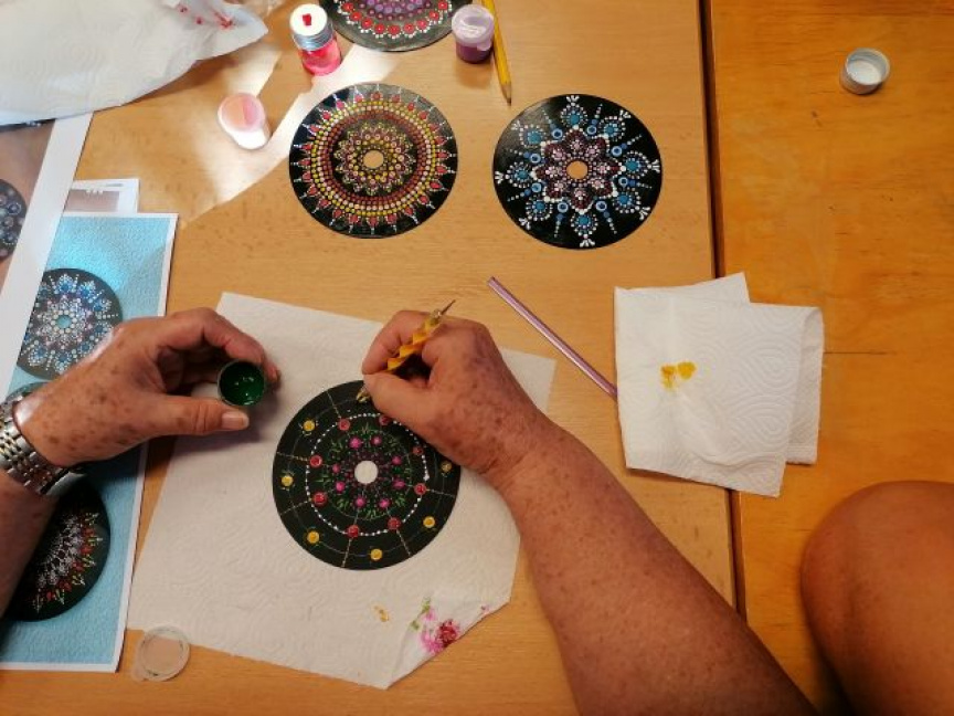 V priestoroch Posádkového klubu Bratislava sa 6.9.2023 konalo kreatívne stretnutie členiek krúžku ručných prác pod vedením vedúcej krúžku pani Klaudie Duchoňovej. Pod šikovnými rukami členiek krúžku vznikali zaujímavé obrazce - mandaly, ktoré môžu skrášliť domácnosť, prípadne môžu byť ako milý darček pre priateľov.