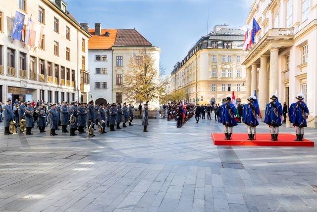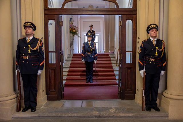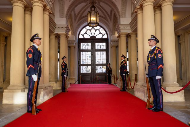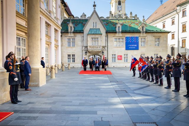 Slávnostný ceremoniál pod velením kapitána Tomáša Meda sa začal v reprezentačných priestoroch Primaciálneho paláca. Na prijatí prezidentov V4 sa podieľalo 102 príslušníkov Čestnej stráže prezidenta SR pod velením majora Mariána Mäsiara.