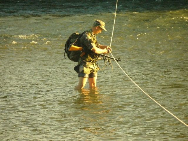 Skalnatý priestor a členitý terén priviedol príslušníkov roty k vodnej prekážke vodného toku Váh, ktorú museli prekonať brodením. Súbežne na to nasledovalo prekonávanie priepuste v stiesnených podmienkach Krpelianskeho kanála a následne bol realizovaný nočný presun.
