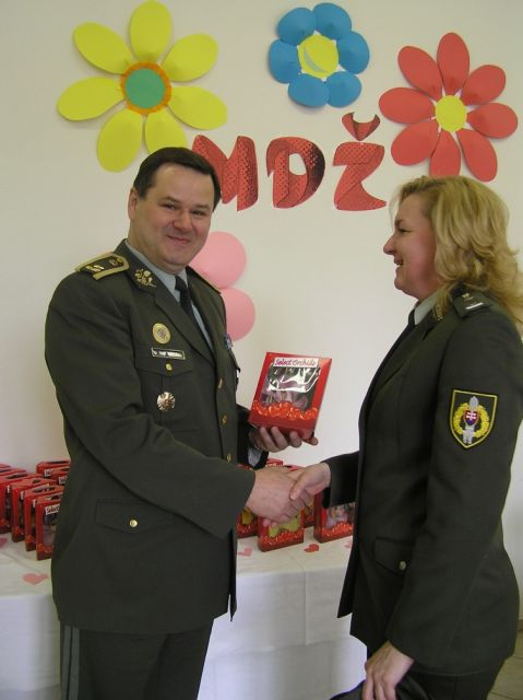 Takto veliteľ topoľčianskej posádky brigádny generál Ivan Hirka spolu s veliteľmi podriadených jednotiek poďakoval všetkým prítomným ženám za bránami kasární. V súčasnosti je v Jaselských kasárňach zamestnaných 56 vojačiek a zamestnankýň.