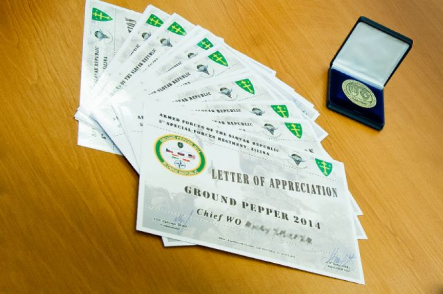 Žilina 23. októbra (TASR) - Príslušníci prostějovskej 601. skupiny špeciálnych síl dnes v Žiline ukončili dvojtýždňový pobyt na území Slovenskej republiky. Viac ako desiatka elitných vojakov pôsobila na medzinárodnom vojenskom cvičení Ground Pepper 2014, spolu s ich slovenskými kolegami zo žilinského 5. pluku špeciálneho určenia. TASR o tom informoval hovorca 5. pluku špeciálneho určenia Mário Pažický.