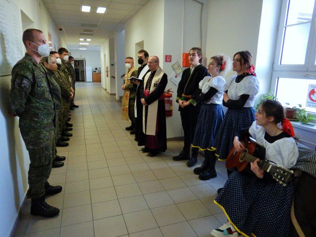 V tradícii požehnávania domov, bytov a pracovných priestorov v období Zjavenia Pána, v stredu 12. januára navštívil Veliteľstvo posádky Bratislava Ordinár OS a OZ SR Mons. František Rábek, aby vyslúžil trojkráľové posvätenie služobných priestorov VePBA. Za dodržania protipandemických opatrení privítal Ordinára veliteľ VePBA plukovník Miloslav Arnold spoločne so starším kaplánom útvaru majorom Slavkom Ganajom a príslušníkmi VePBA. Po úvodnej spoločnej modlitbe zazneli trojkráľové koledy v podaní študentov Cirkevného konzervatória so sídlom v Bratislave. Následne otec biskup posvätil kancelárie a všetkým prítomným poprial požehnaný a úspešný rok 2022.