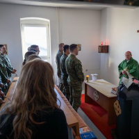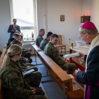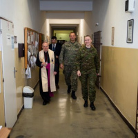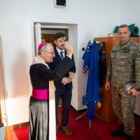 Vo štvrtok 11. januára navštívil ordinár OS a OZ SR Mons. František RÁBEK Čestnú stráž prezidenta SR, kde pokračoval v tradícii trojkráľového požehnávania pracovných priestorov. Ordinára privítal veliteľ čestnej stráže plukovník Ing. Andrej TVRDOŇ a príslušníci ČS PSR. Po spoločných modlitbách otec biskup všetkým prítomným poprial požehnaný a úspešný rok 2024 posvätil kancelárie a pracovné priestory príslušníkom ČS PSR.