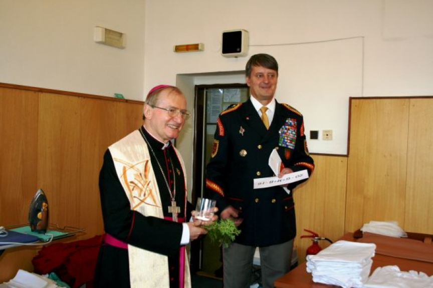 Ordinára OS a OZ SR privítal v útvarovej kaplnke spolu s veriacimi príslušníkmi útvaru veliteľ Čestnej stráže prezidenta SR plukovník Miroslav Ištván a náčelník štábu podplukovník Branislav Vavrinec.
