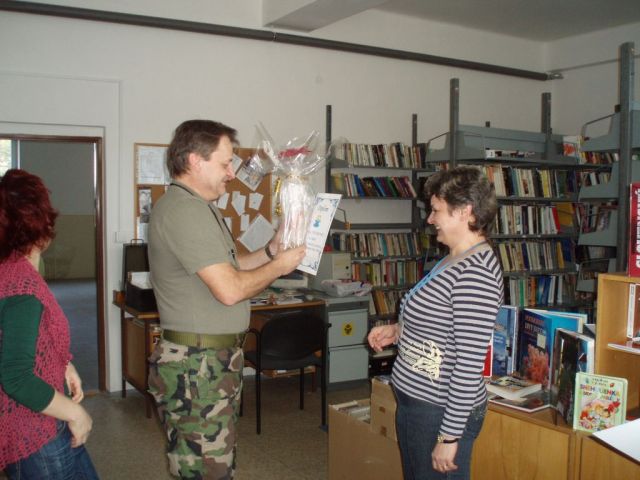 Čo je týždeň slovenských knižníc? Slovenská asociácia knižníc nadviazala na predchádzajúce úspešné ročníky a vyhlásila už 10. ročník Týždňa slovenských knižníc v dňoch 23. - 29. marca 2009 s mottom: "Knižnice pre všetkých" s cieľom: pozitívne zviditeľňovať knižnice ako kultúrne a vzdelávacie inštitúcie prostredníctvom najrozmanitejšieho spektra aktivít a podujatí. Vojenské osvetové knižnice sa taktiež zúčastňujú tejto celoslovenskej akcie. Brigáda velenia, riadenia a prieskumu každoročne v rámci tohto podujatia vyhodnocuje svojich troch najlepších čitateľov. Opätovne zvíťazili ženy a ceny v mene veliteľa odovzdal zástupca bvrps pplk. Ing. Vladimír JAKLOVSKÝ.