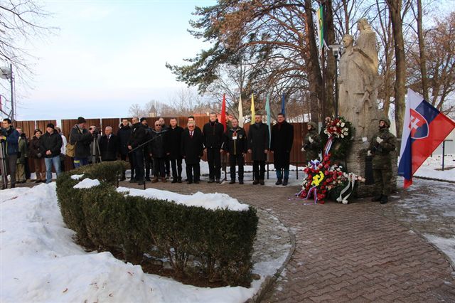 Súčasťou programu tohto významného podujatia bola pieta, kedy delegácie položením vencov pri Pamätníku padlých vzdali hold hrdinským bojovníkom ako symbol poďakovania. Pred samotným pietnym aktom kladenia vencov, ktorý podporili príslušníci z nitrianskeho 12. mechanizovaného práporu a Vojenskej hudby z Banskej Bystrice, odzneli príhovory s odkazom pripomínať si a ďalej šíriť odkaz SNP.