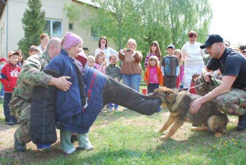 V krásny slnečný štvrtok, psovodi z Leteckej základne generálmajora Otta Smika Sliač prišli potešiť detské oči malých škôlkarov a školákov do priestorov materskej školy vo Vlkanovej. Psovodi vo svojej ukážke predviedli základnú poslušnosť psov, zadržanie páchateľa.