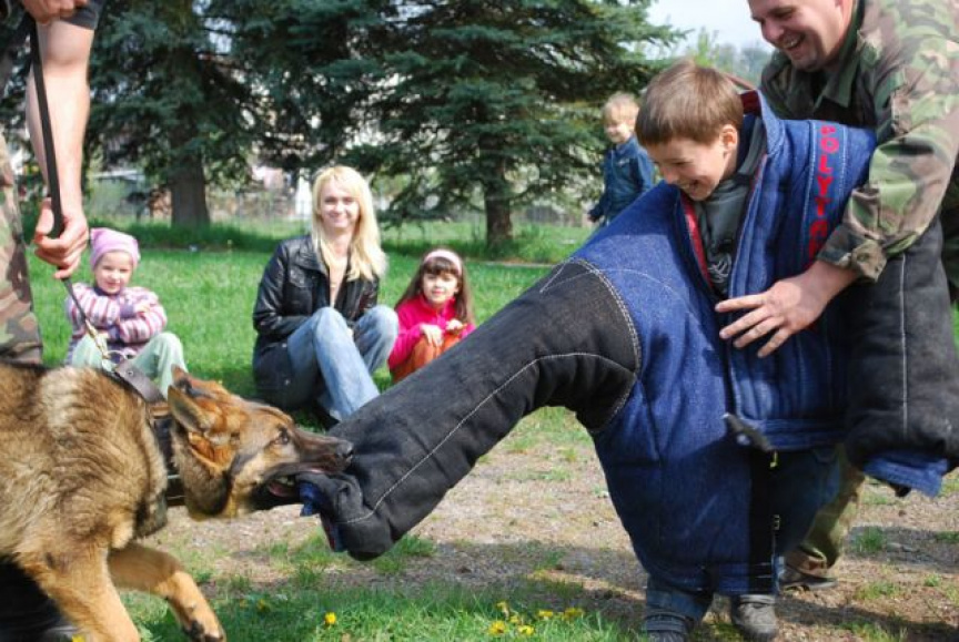Deti sami pochopili, že pred týmito psíkmi by nikto nedokázal ujsť. Malí škôlkari aj školáci si potom vyskúšali celotelový ochranný odev a mohli si psíkov pohladkať.