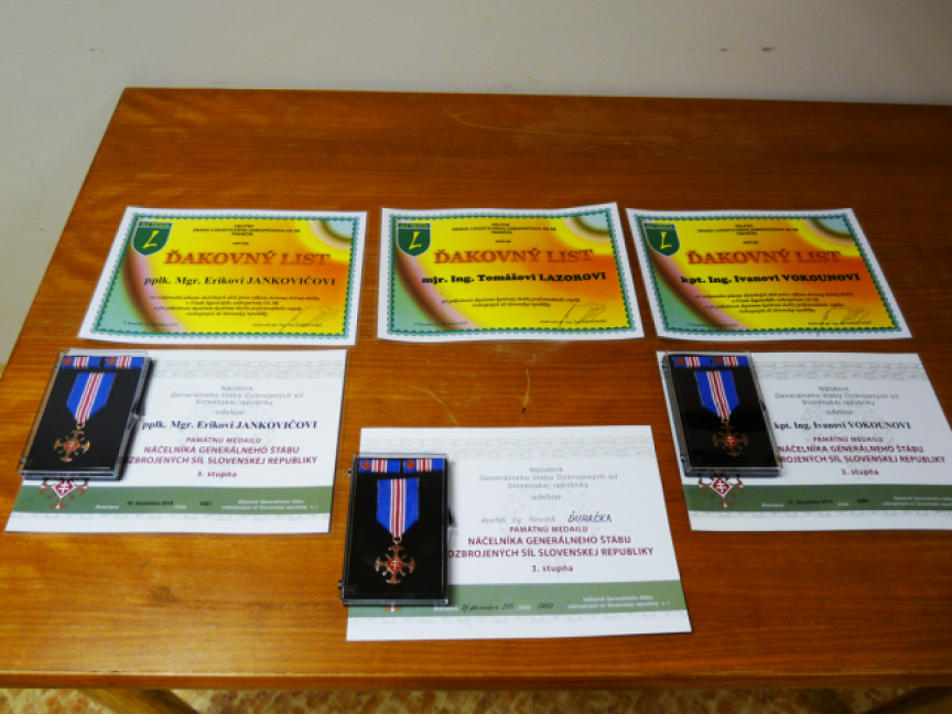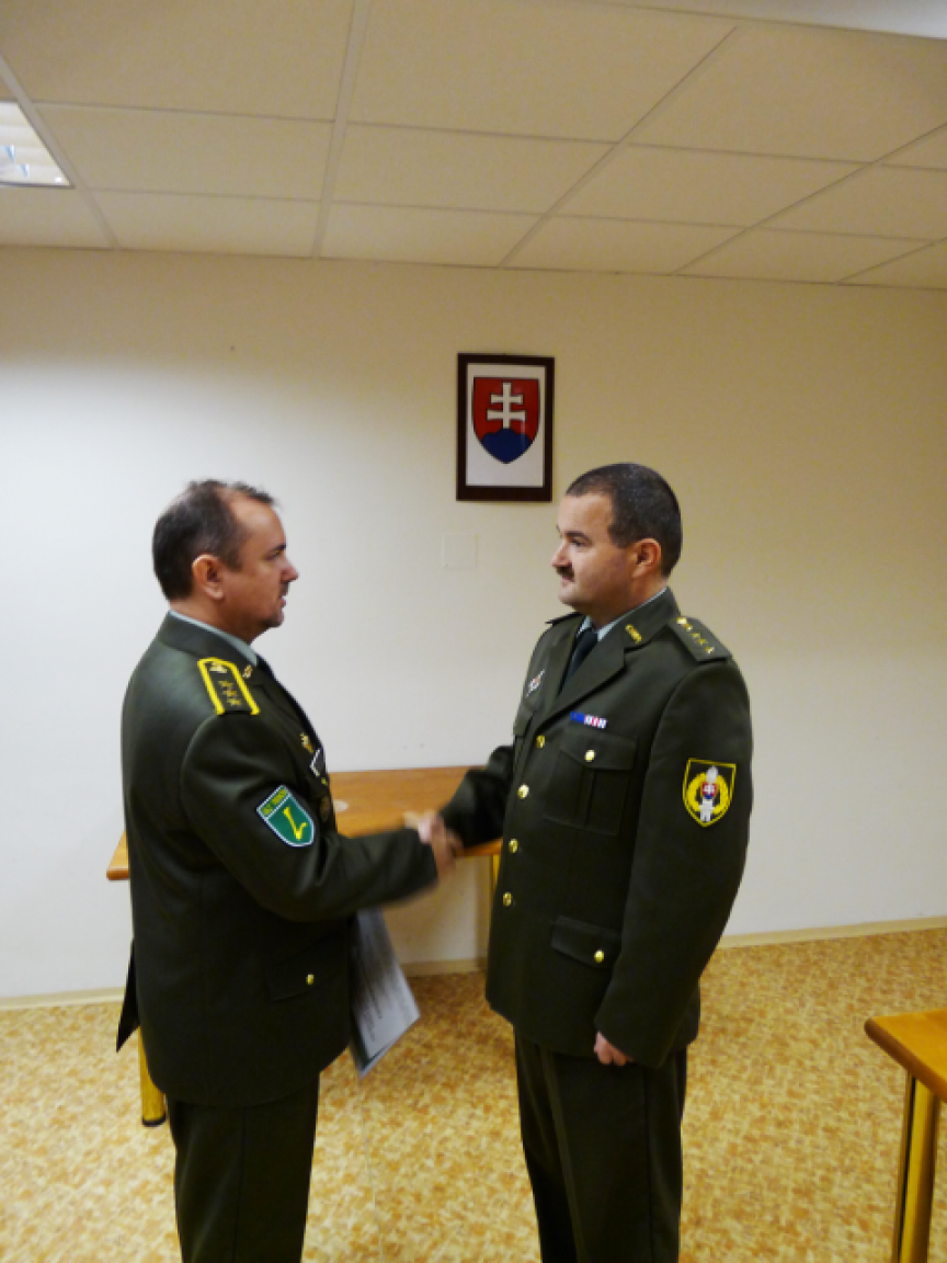 Po prečítaní priebehu služby v Ozbrojených silách SR odovzdal odchádzajúcim profesionálnym vojakom plukovník gšt. Ján Žarnovický ďakovné listy a pamätnú medailu náčelníka Generálneho štábu OS SR III. stupňa (bronzovú), ktorú udelil náčelník Generálneho štábu OS SR pri príležitosti skončenia služobného pomeru odchádzajúcim PrV.
