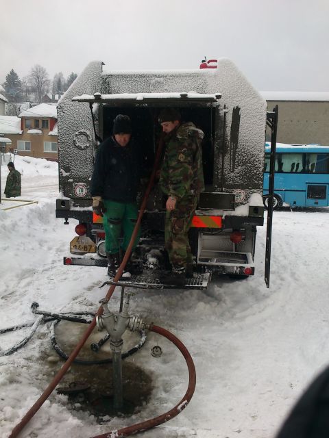 Práce v maximálnej možnej miere uľahčila aj nadštandardná spolupráca so starostom obce ČAVOJ pánom Jánom NOVOTKOM (na foto v civilnom odeve) zabezpečením zdroja pitnej vody pre plnenie vodojemu, ubytovania a stravovania pre nasadených PrV ako aj technickou a organizačnou pomocou aj nad rámec povinností, za čo mu patrí vďaka nielen občanov obce ale aj veliteľa práporu.