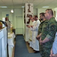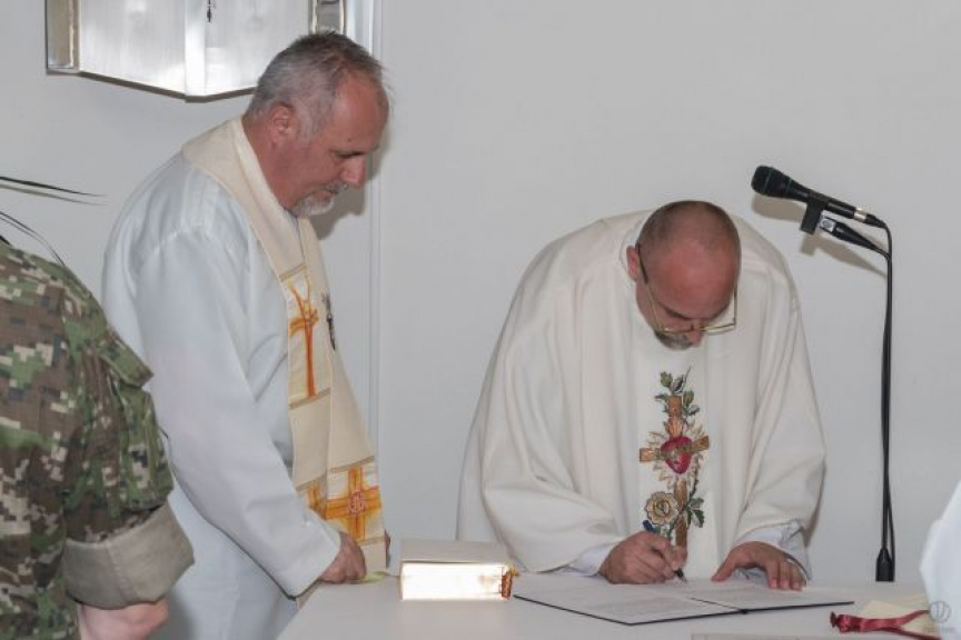 Po tejto návšteve sa všetci odobrali do vojenskej kaplnky sv. Michala archanjela, kde počas slávnostnej svätej omše vojenský ordinár uviedol do funkcie nového dekana vojenského dekanátu vzdušných síl, ktorý do 30. apríla 2022 pôsobil ako vojenský kaplán na 2. brigáde Vzdušných síl vo Zvolene.