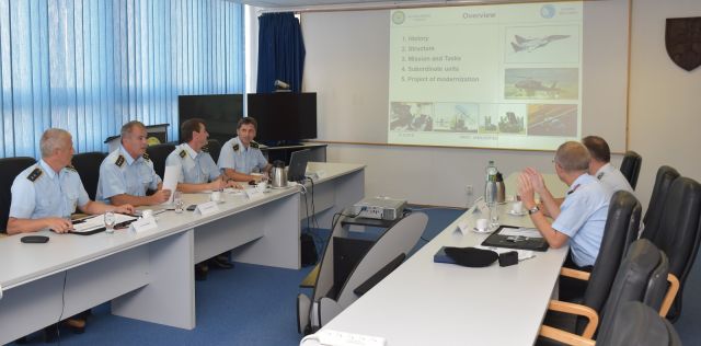 Za prítomnosti hlavných funkcionárov veliteľstva vzdušných síl, zástupca náčelníka štábu, plukovník Róbert Kleštinec odprezentoval vzdušné sily, pričom sa venoval histórii, štruktúre, hlavným úlohám vzdušných síl, predstavil cvičenia a projekty modernizácie. V následnej diskusii spoločne prerokovali proces modernizácie vzdušných síl a otázky spolupráce pri výcviku personálu.