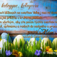 Dovoľte mi, aby som Vám zo srdca zaželal príjemné prežitie veľkonočných sviatkov. Prajem Vám, aby ste ich prežili s našimi krásnymi tradíciami v kruhu svojich blízkych v zábave a dobrej nálade.