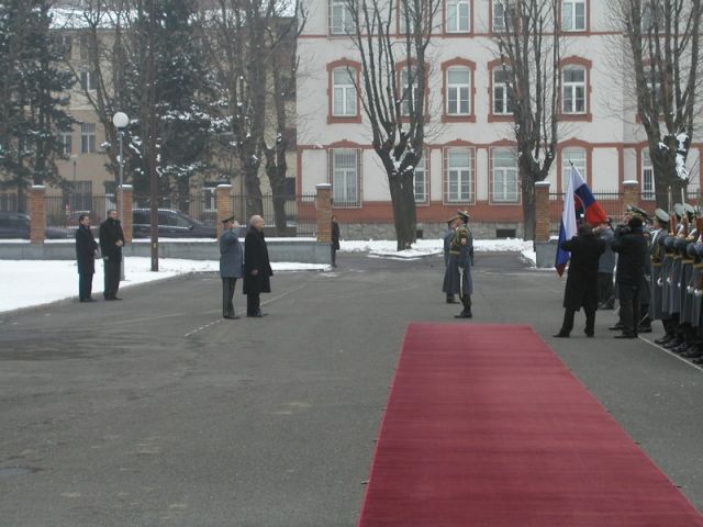 Rota Čestnej stráže OS SR Bratislava za doprovodu Vojenskej hudby OS SR Bratislava, vzdala prezidentovi Slovenskej republiky úplné vojenské pocty, pri príležitosti otvorenia Veliteľského zhromaždenia náčelníka Generálneho štábu OS SR a konferencie k strategickému hodnoteniu obrany, konaného v dňoch 1. – 2. februára 2011.