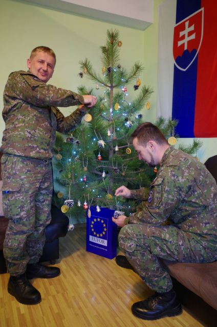 Značná časť slovenských vojakov zostáva aj počas vianočných a novoročných sviatkov plniť úlohy operácie na Balkáne. Podľa veliteľov LOT tímov Foča a Višegrad majorov Branislava Krajčíka a Milana Kuzmiaka sa snažia aj na svojich pracoviskách navodiť sviatočnú atmosféru. Vo Foči práve rotmajstri Milan Chovanec a Dušan Šimko zdobili vianočný stromček.