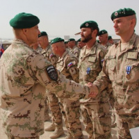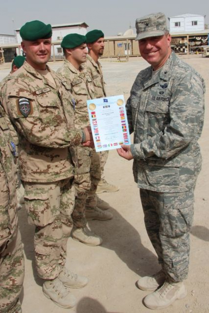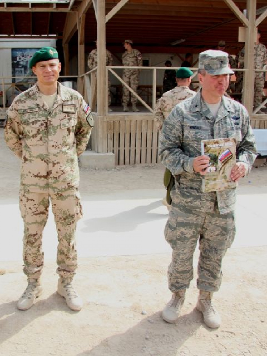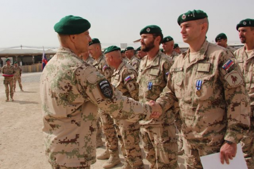 V dopoludňajších hodinách nastúpili vojaci strážnej jednotky z marcovej rotácie, ktorí sa vrátia na Slovensko v septembri tohto roka, aby si prevzali medaily NATO Non-Article-5 za službu NATO v operácii ISAF. Medaily vojakom osobne odovzdal veliteľ základne KAF Kandahár americký brigádny generál Jeffrey Kendall, ktorý vo svojom príhovore vojakom zdôraznil dôležitosť príspevku každej krajiny v rámci koaličných síl operujúcich v Afganistane. „Vaša profesionalita pri zabezpečovaní bezpečnosti na vstupe ECP-5 do základne na mňa urobila obrovský dojem. Musím povedať, že za vašu nebezpečnú prácu v prospech bezpečnosti všetkých, ktorí sú na základni, si zaslúžite uznanie,“ povedal Kendall. „Verím, že pri návrate domov vás ľudia privítajú ako ozajstných hrdinov, lebo nimi naozaj ste,“ zdôraznil na záver. Veliteľ slovenského kontingentu pri tejto príležitosti odovzdal vojakom aj medaily Vojnový veterán.