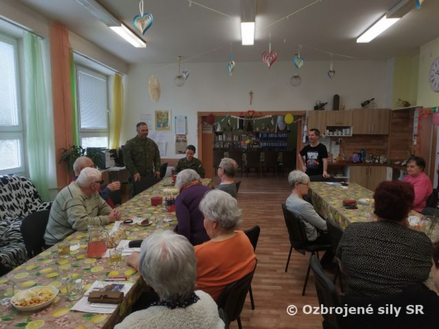 Štábny nadrotmajster Jaroslav Pinkoš priblížil klientom úlohy a poslanie ozbrojených síl pri ochrane Slovenskej republiky a ochrane civilného obyvateľstva. „Sme pripravení pomáhať a chrániť všetkých občanov, vrátane seniorov,“ zdôraznil.
