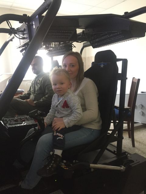 Vyzbieranú sumu odovzdali Michaele Štapinskej hlavní funkcionári vrtuľníkového krídla - veliteľ, plukovník Róbert Tóth a jeho zástupca, podplukovník Peter Kríž. Návšteve sa po celý čas venoval lietajúci personál, ktorý Adamkovi umožnil vyskúšať aj nový simulátor. „Vrtuľnikováči“, ako ich malý hrdina nazval, mu zároveň podarovali nášivky, nálepky, plagát aj tričko s logom vrtuľníkového krídla.