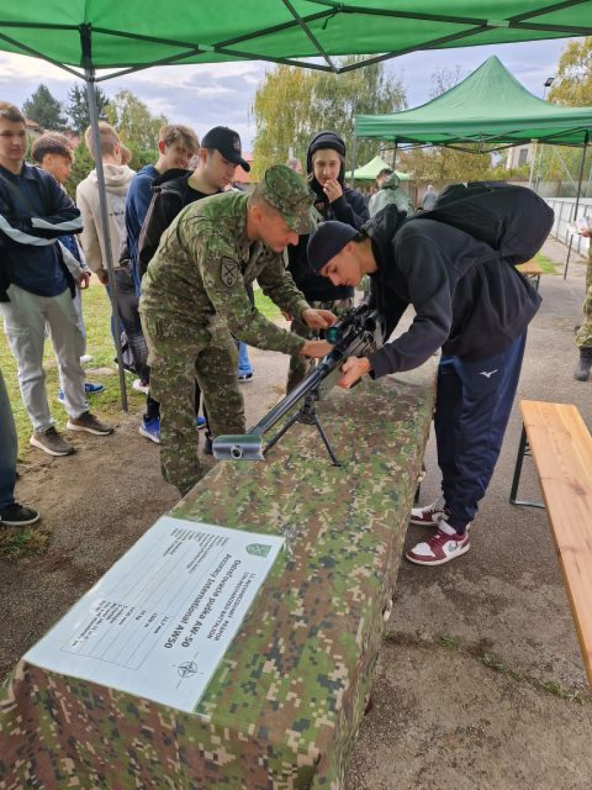Pre študentov 1. a 2. ročníka bolo pripravených 6 stanovíšť s praktickými a interaktívnymi ukážkami určenej výzbroje, výstroja a osobného materiálu vojakov. Študentov zaujala najmä prezentácia komunikačných prostriedkov, kde mali možnosť oboznámiť sa s poľným telefónom, vysielačkami a rádiostanicami, ale tiež ukážky z oblasti radiačno-chemicko-biologickej ochrany (RCHBO). V rámci streleckej prípravy im naši profesionáli predstavili zbrane a zbraňové systémy vzdušných aj pozemných síl - pištoľ, samopal, guľomet, ale aj raketnicu IGLA.