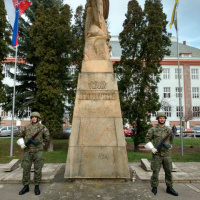 Vojaci z Práporu logistiky Hlohovec na pietnych aktoch pri príležitosti 73. výročia oslobodenia miest Hlohovec, Piešťany a Trnava