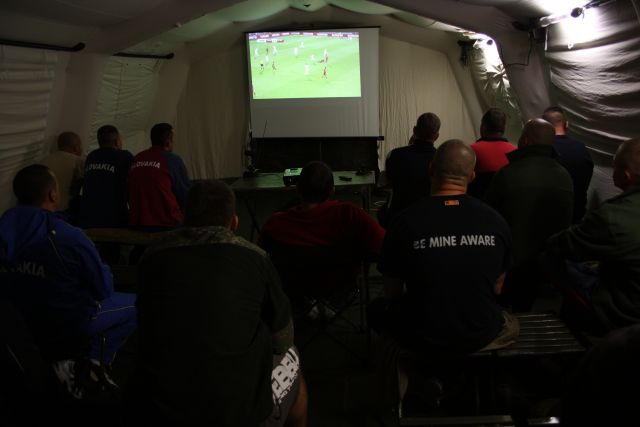 Náročné obdobie intenzívneho výcviku, ďaleko od svojich domovov a rodín, sa velitelia snažia vojakom v rámci možností aspoň trochu uľahčiť, spríjemniť. Po náročnom dennom výcviku, ak ho nestrieda nočný, majú možnosť si ísť zabehať, zúčastniť sa Bohoslužby, alebo vypnúť napríklad pri čítaní knihy. Vďaka Vojenskej podpornej nadácii a všetkým prispievateľom, ktorí poukázali 2% z odvedenej dane v prospech jej programu Vzájomná pomoc, získali aj ďalšiu možnosť kultúrneho vyžitia. S pomocou nadáciou zakúpeného projektora, sa totiž podarilo vytvoriť pre vojakov akúsi mobilnú kinosálu, ktorá bola pokrstená premietaním štvrtkového (9.októbra 2014) úspešného futbalového zápasu medzi Slovenskom a Španielskom.
