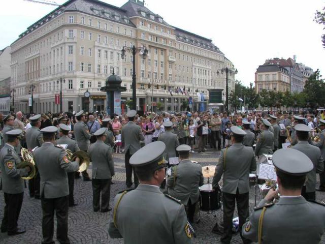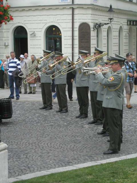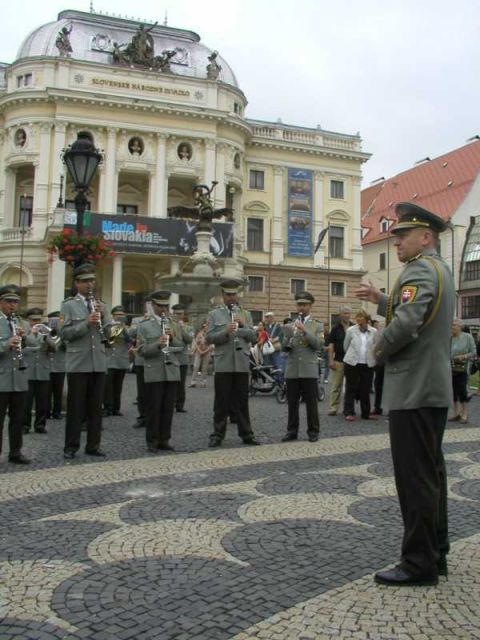 Vojenská hudba OS SR a taliansky band na verejnom vystúpení v Bratislave