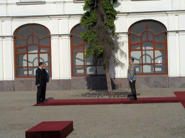 Počas prijatia ministrom obrany Ľubomírom Galkom sme vykonali vojenské pocty na Ministerstve obrany SR.