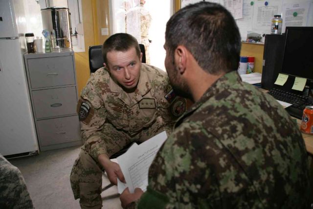 „Našou hlavnou úlohou je odborné poradenstvo a pomoc pri výcviku logistického práporu jednej z brigád 205. zboru Afganskej národnej armády,“ hovorí veliteľ mnohonárodného tímu podplukovník Ivan Balog. „Zároveň ľudí z ANA učíme, ako učiť, pretože oni budú svoje poznatky odovzdávať ďalej,“ dodáva veliteľ. Vysvetľuje, že spojencov z ANA školia v oblasti logistiky, zabezpečenia konvojov, evidencie materiálu a v ďalších zručnostiach. V súčasnosti je veľmi žiadaný počítačový kurz. Podľa pplk. Ivana Baloga sa negramotnosť dôstojníckeho zboru mentorovaného práporu netýka. Poddôstojníci sú gramotní na 80 percent a mužstvo na 20 percent. No a z tých najšikovnejších vyberajú afganských vojakov, ktorí majú potenciál zvládnuť počítač. „Je to pre nich dosť ťažké, pretože zväčša hovoria jazykom dari a zároveň používajú anglické verzie programov. No neskutočne sa snažia a ovládanie počítača je pre nich otázkou veľkej prestíže a hrdosti,“ hovorí mentor počítačového kurzu rotný Ľuboš Mandinec. O veľkej snahe Afgancov nás ubezpečuje aj mentor v oblasti logistických postupov kapitán Peter Bednárik. „Niekedy majú síce sklony zjednodušovať si veci oproti svojim vlastným normám, ale učia sa a sú fakt šikovní.“