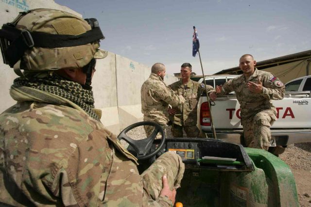 Austrálčan práporčík Ron Rogers a Slovák rotný Boris Belák dnes cvičili afganských inštruktorov, ktorí budú svoje poznatky odovzdávať svojim kolegom, ktorí riadia presuny konvojov. „Priznám sa, že až v spoločnom tíme som pochopil, že Slovensko nie je Československo a som rád, že medzi Slovákmi som spoznal svojich priateľov,“ konštatoval práporčík Rogers.