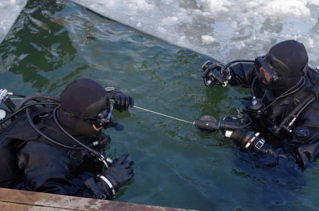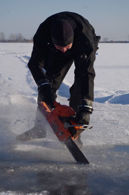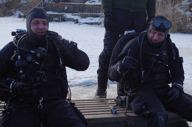 Na Guláške potápačov privítala až trinásť metrov hlboká voda, s teplotou od 2 do 4°C a ľad hrubý vyše 20 centimetrov. Do neho vyrezal potápač špecialista slobodník Matúš Gibas motorovou pílou potrebné otvory. Mali rozmery minimálne jeden a pol metra krát jeden a pol metra. Vyrezanú kryhu rozdelil na niekoľko častí a väčšinu zasunul pod ľad. Počas celého zamestnania bola teplota vzduchu okolo mínus štyri stupne. „Takéto pravé zimné podmienky s hrubým ľadom a doslova čírou vodou sme za posledné roky nezažili,“ pochvaľuje si rotný Búda, ktorý išiel do vody v prvej dvojici a vyviazal trasu pod ľadom potápačským navijákom. Celá trasa bola dlhá do 100 metrov. Je rád, že svoju takmer 30 minútovú premiéru pod ľadom úspešne absolvovali hneď niekoľkí vojenskí potápači: slobodníci Matúš Gibas, Marek Búš, vojaci Gabriel Szalai, Tomáš Bachratý a čatár Rastislav Gronský. Veď pod vodnou hladinou ich čakali mnohé prekážky v podobe kmeňov stromov, vane či plošiny, o ktoré museli urobiť tzv. kontrolný medzivýväz. Úlohy plnila vždy dvojica potápačov. Museli sa vedieť orientovať pod ľadom, na ktorom ležala snehová pokrývka.