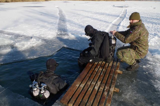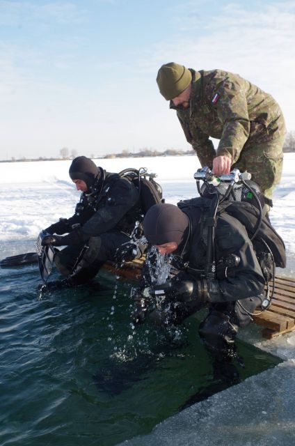 Príslušníci prieskumného potápačského družstva seredského ženijného práporu sa venovali v tretí januárový týždeň v rámci výcviku potápačských odborností potápaniu pod ľadom. Vedúci zamestnania rotný Vladimír Búda, ktorý je veliteľom potápačského prieskumného družstva približuje, že výcvik, ktorý trval od 16. do 20. januára pozostával z teoretickej a praktickej prípravy. Najskôr v bazéne a následne z potápania na otvorenej vode. Výcvik sa uskutočnil v náročných klimatických podmienkach v priestoroch štrkovísk Čierna Voda a Guláška v Senci.