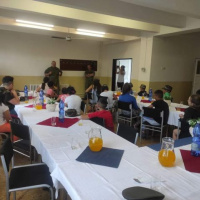 Po spoločnom obede bola pre deti pripravená krátka besiedka s príslušníkom práporu, ktorý tiež vyrastal v podobnom zariadení. Porozprával im o svojej ceste životom, o tom ako sa stal profesionálnym vojakom a čo služba vlasti znamená.