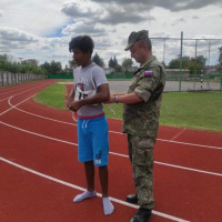 Profesionálni vojaci z Hlohovca si pre deti z centra pripravili celodenný program, v ktorom im priblížili zaujímavosti zo života profesionálneho vojaka. Ako inak, tento deň pre deti musel začať rannou rozcvičkou, po ktorej nasledovalo ,,preskúšanie“ z pohybovej výkonnosti. Dievčatá a chlapci si preverili svoje fyzické schopnosti v disciplínach ako sed-ľah, zhyby na hrazde, člnkový beh na 10x10 metrov a obľúbený 12 minútový beh.