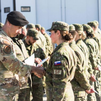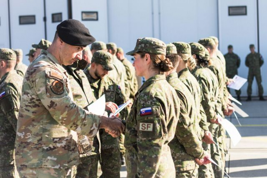Veliteľ 81. krídla Sliač plukovník František Pytlík a hlavný inštruktor mobilného výcvikového tímu hlavný seržant William Noble odovzdali certifikáty a nášivky SF cvičiacim príslušníkom práporu, ktorí úspešne splnili stanovené výcvikové úlohy a kritériá.