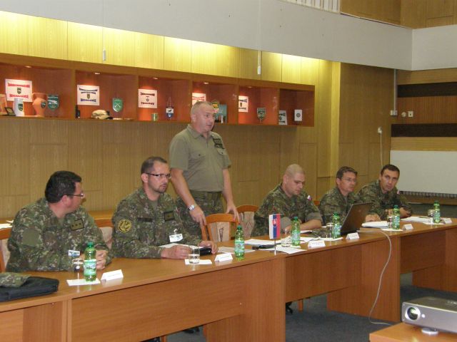 Náčelník štábu brigády podplukovník STAVROVSKÝ privítal 4-člennú delegáciu z Ukrajiny a spolu s funkcionármi štábu predstavil hosťom 2.mechanizovanú brigádu, jej historický vývoj až po súčasnosť a jej hlavné druhy bojovej techniky.