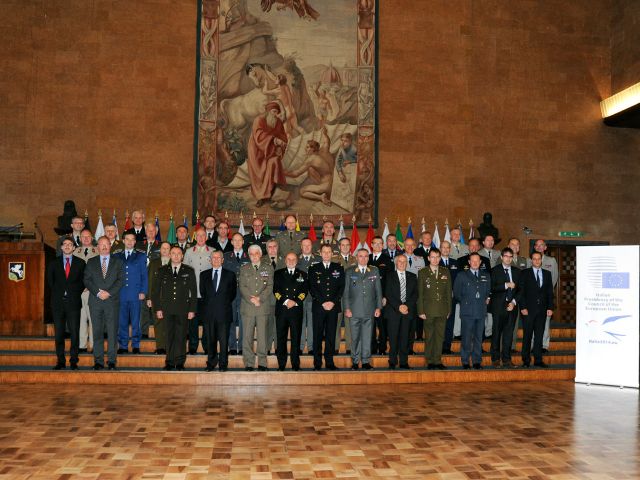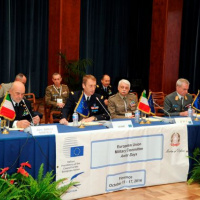 Vojenských predstaviteľov privítal náčelník Generálneho štábu Ozbrojených síl Talianska, admirál Binelli Mantelli, ktorý vo svojom úvodnom vystúpení ocenil aktivity EUMC pri podpore angažovanosti EÚ v krízových oblastiach. Nasledujúci deň bol venovaný diskusii o bezpečnostnej politike EÚ a operáciách a misiách SBOP s generálom Vincenzo Camporinim, bývalým náčelníkom GŠ OS Talianska, ktorá sa uskutočnila v Inštitúte vojenskej leteckej vedy. V rámci rozpravy o súčasných vojenských spôsobilostiach, ako napr. pertraktovaná problematika bezpilotných prostriedkoch (RPAS), vystúpil niekdajší taliansky minister obrany admirál Giampaolo Di Paola. Keďže s operáciami úzko súvisí aj tvorba relevantných mapových podkladov, vojenskí predstavitelia boli oboznámení o činnosti Vojenského kartografického inštitútu a jeho produktoch pre OS Talianska.
