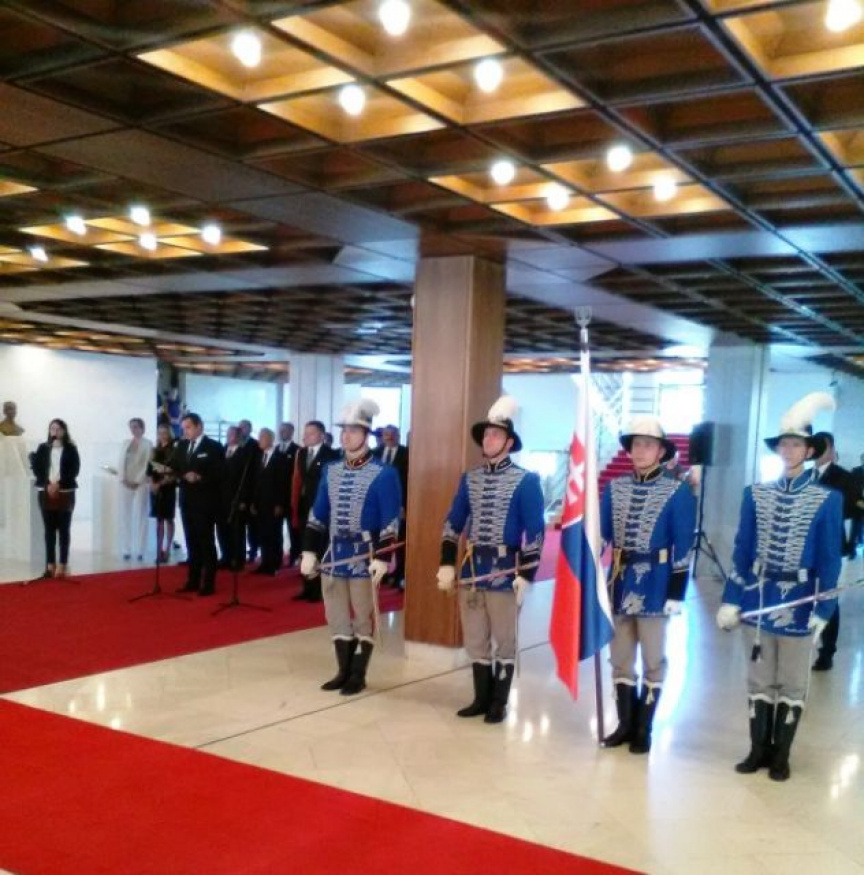 K dôstojnému priebehu slávnostnej ceremónie prispeli aj príslušníci Čestnej stráže OS SR.