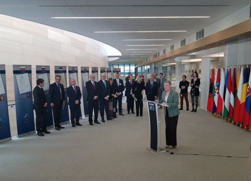 Zástupkyňa generálneho tajomníka NATO Rose GOTTEMOELLER otvorila výstavu a vo svojom príhovore zdôraznila, že rozšírenie Aliancie bolo veľkým úspechom a prinieslo stabilitu a prosperitu nám všetkým.