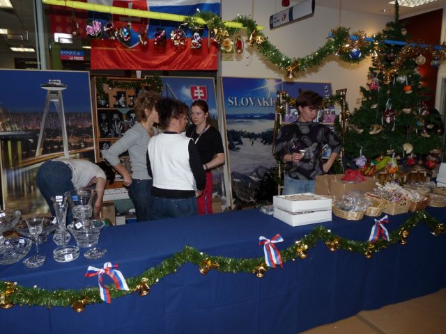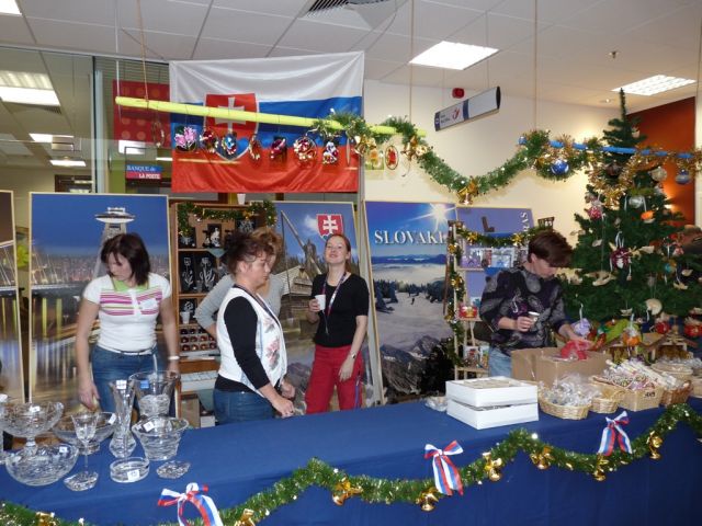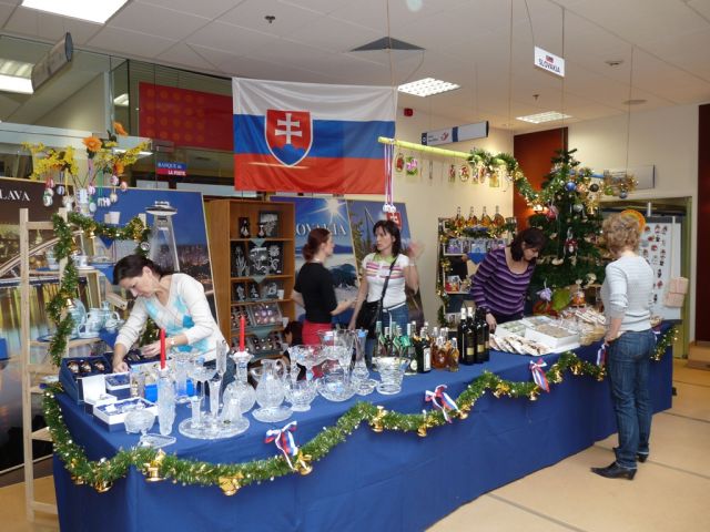 Úrad vojenského predstaviteľa SD SR pri NATO prispel sumou 4000 Eur. Úrad vojenského predstaviteľa SD SR pri NATO predstavil ostatným členským krajinám kúsok Slovenska v podobe medových perníkov, modranskej keramiky, typických vianočných ozdôb ale aj slovenského krištáľu, po prvýkrát sme prezentovali aj slovenské vína Topolčianky a Matyšák. Veľký úspech mal aj náš stánok s jedlom. Slovenské klobásky rozvoniavali po celej reštaurácii HQ NATO a keď už ich tá vôňa prilákala až k nášmu stánku nepohrdli ani slovenským pivom Šariš a Zlatý Bažant, stánok mali pod palcom príslušníci oddelenia EU.