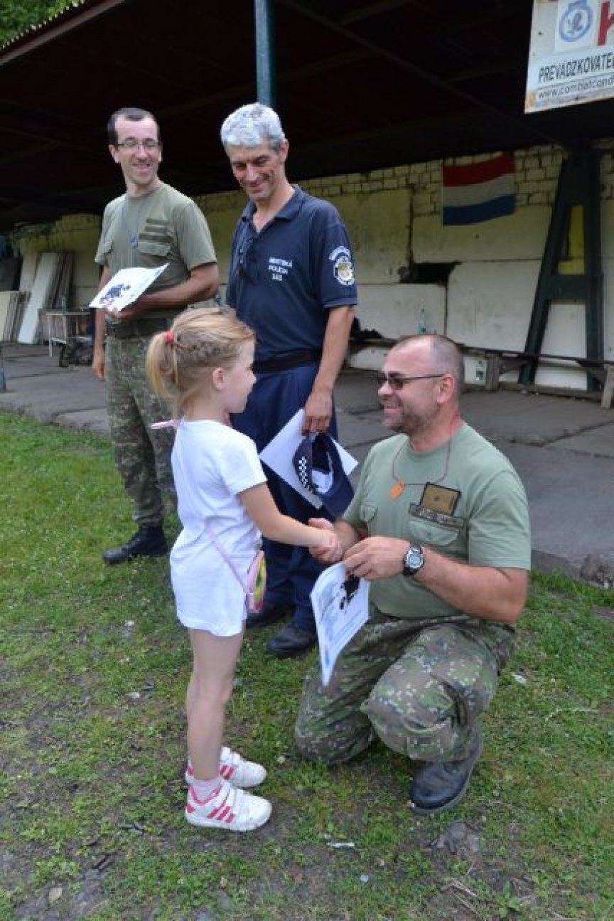 Príjemné chvíle zažili víťazi, keď im pri oceňovaní gratulovali nielen plukovník Róbert Tóth a major Ján Pohlod, ale zablahoželať k úspechu im prišla aj neter Dušana Paľucha, Leuška Nemešpetrová, ktorá si pre víťazov pripravila vlastnoručne vyrobené medaile.