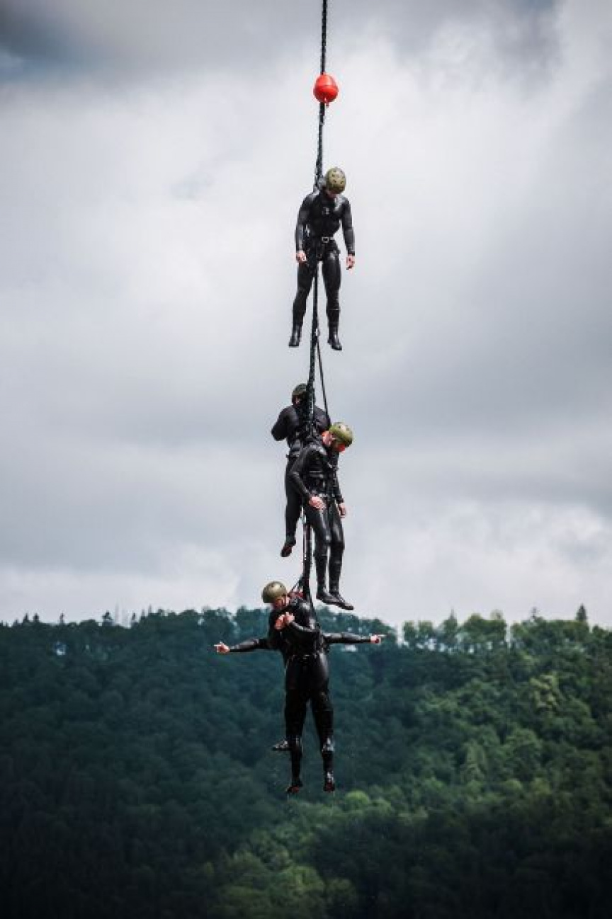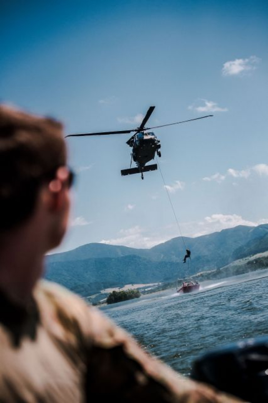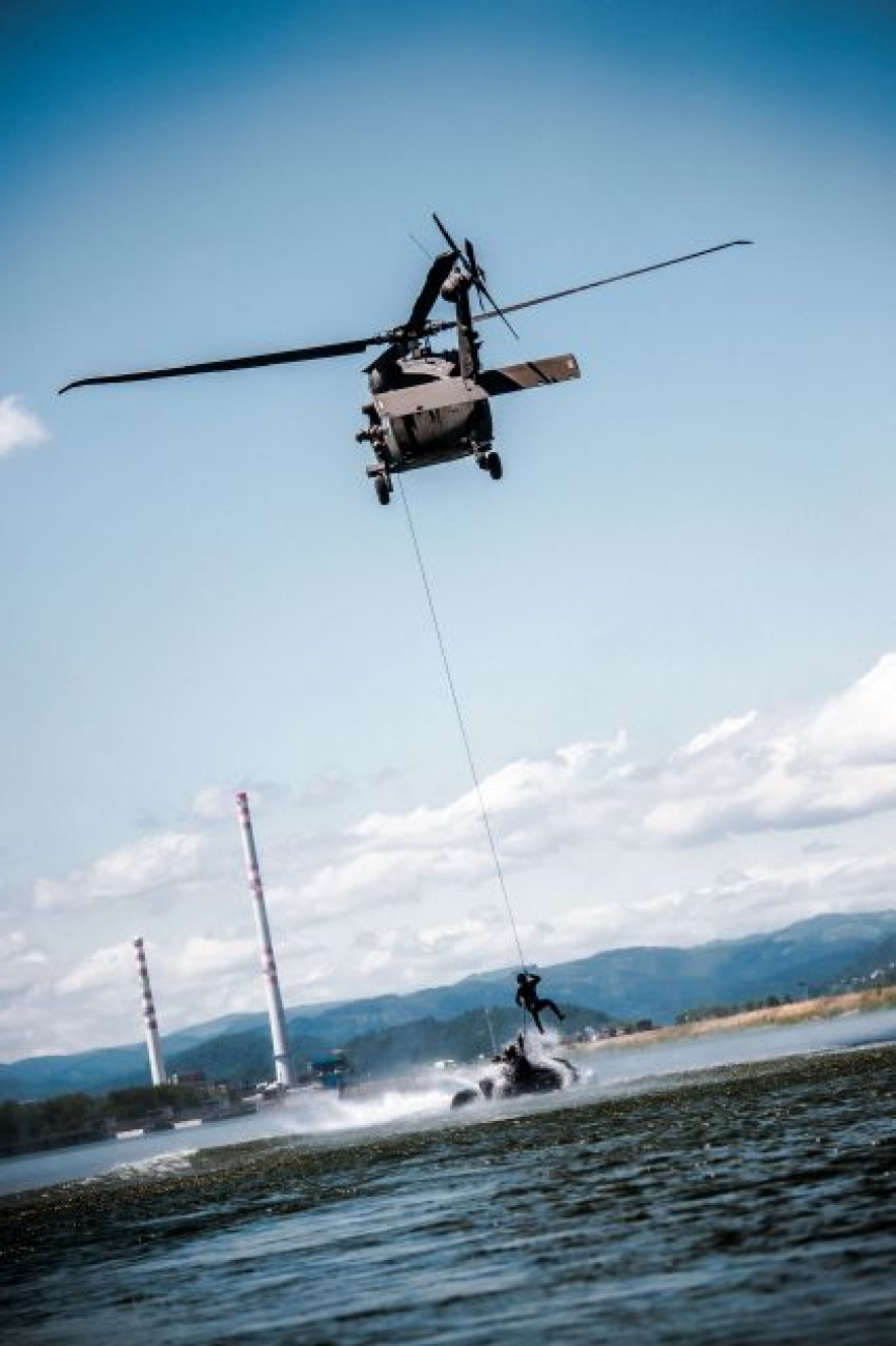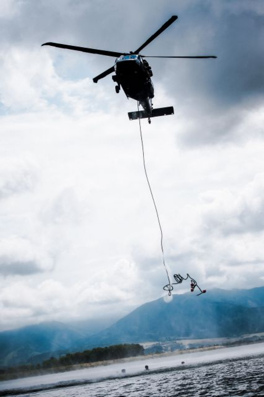 Vrtuľník UH-60M Black Hawk z Prešova tentoraz neposkytoval skvelú leteckú podporu klasickým výsadkom na pevnú zem. Vojaci boli vysadzovaní na vodnú plochu. Okrem bojových zoskokov v poobedných hodinách prebiehalo precvičenie alternatívnych spôsobov zasadenia obojživelných skupín. Žilinskí obojžívelníci a potápači zdokonaľovali a precvičovali zladenosť v rôznych spôsoboch zasadenia, napríklad formou Rappeling na tenkom lane do člna Zodiac FC 470, výskokom z nízkeho letu vrtuľníka a extrakciu hrubým lanom metódou SPIES.