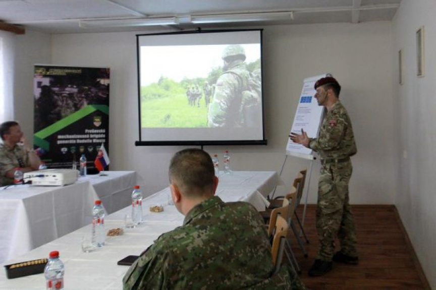 Po krátkom brífingu kapitána Kinsellu nasledovala diskusia, v ktorej pán Kuchta vyjadril poďakovanie zástupcom BMATT za aktívny príspevok do rozvoja bilaterálnej vojenskej spolupráce medzi Slovenskou republikou a Spojeným kráľovstvom v oblasti vzdelávania a výcviku nižšieho veliteľského personálu v rámci štandardov NATO, a to využívaním inovatívnych metód vodcovstva. V tejto súvislosti ocenil aj prebiehajúcu aktivitu, ktorá v nemalej miere prispeje k zvýšeniu pripravenosti personálu OS SR. Plukovník Catmur vyjadril vďaku za podporu výjazdového tímu BMATT a zároveň podporil myšlienku ďalšej spolupráce. Po diskusii nasledovala praktická ukážka vydávania operačného rozkazu účastníkmi kurzu v poli za využitia vizualizácie na plastickom stole.