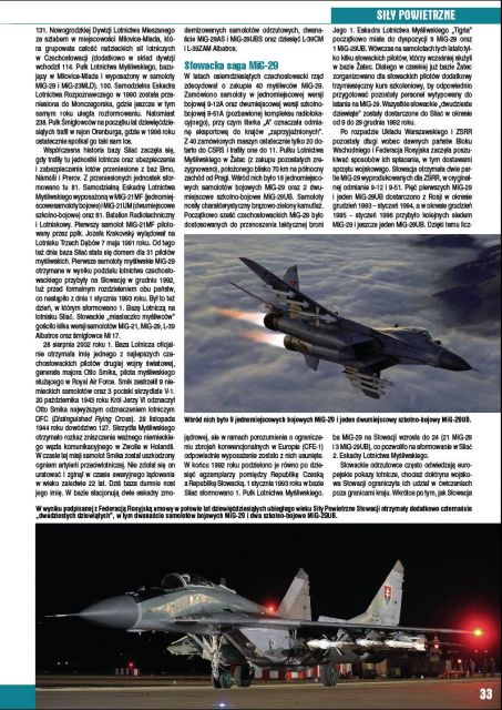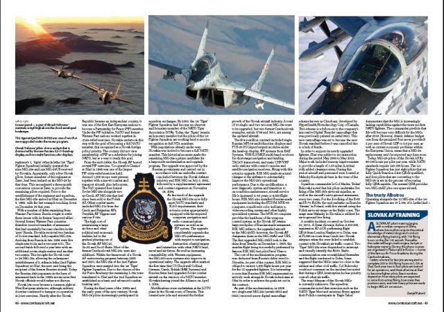 Obsahom marcového čísla týchto časopisov je aj článok od holandského novinára CJ van der Endeho o slovenských stíhacích lietadlách MiG-29 a L-39, ktoré sú dislokované na leteckej základni Sliač. Okrem iného sa čitateľ má možnosť zoznámiť aj so samotnou prácou pilotov a leteckého personálu.