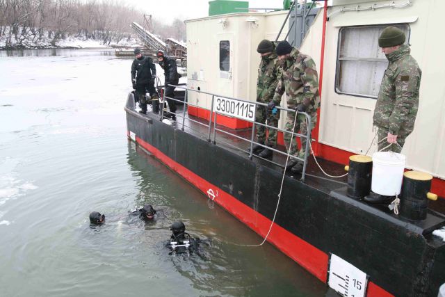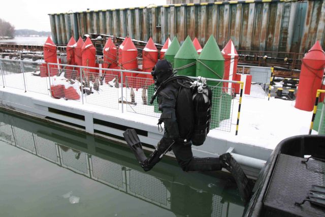 Príslušníci prieskumného potápačského družstva seredského ženijného práporu absolvovali v uplynulých dvoch týždňoch náročný praktický výcvik. Jeho veliteľ rotný Michal Ščepko pripomína, že si okrem iného precvičili prieskum zatopených objektov vo vode (utopená kolesová technika, loď a prístav) a zároveň odstraňovanie nebezpečných výbušných objektov pod vodou. Rovnako tak si vojenskí potápači reálne precvičili prácu pri zabezpečení všetkých dôležitých ovládacích prvkov lode, kotviacej v prístave, aby skupina pracujúca pod trupom lode bola v relatívnom bezpečí.
