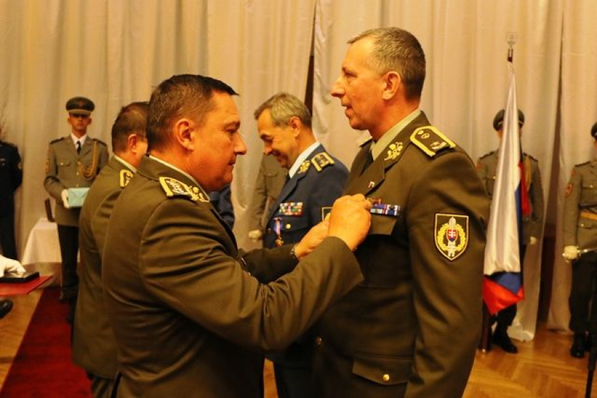 Na záver ceremoniálu generál Zmeko ocenil prácu oboch odchádzajúcich generálov udelením vojenských medailí a odznakov.